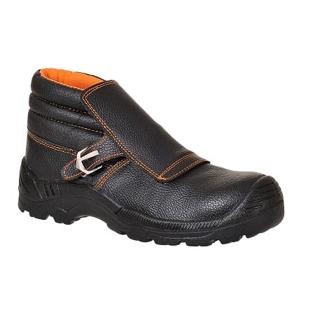 - Bota de soldador de seguridad PORTWEST FW07 S3 con cubierta protectora de piel contra chispas. Tiene zona de apoyo con absorción de energía resistente para que el agua no penetre. Su clase de protección es S3P.